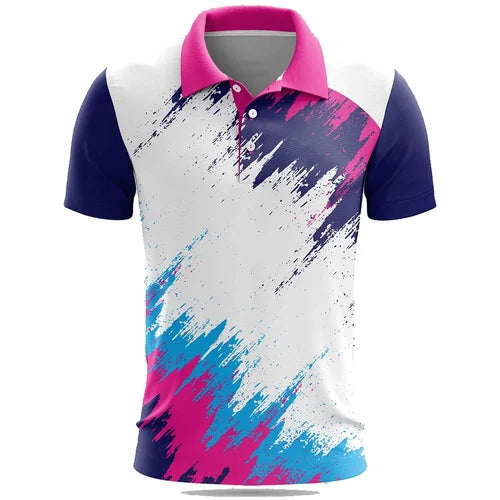 Custom-designed polo shirts, typically made from moisture-wicking polyester fabric, that utilize sublimation printing for vibrant, long-lasting designs.