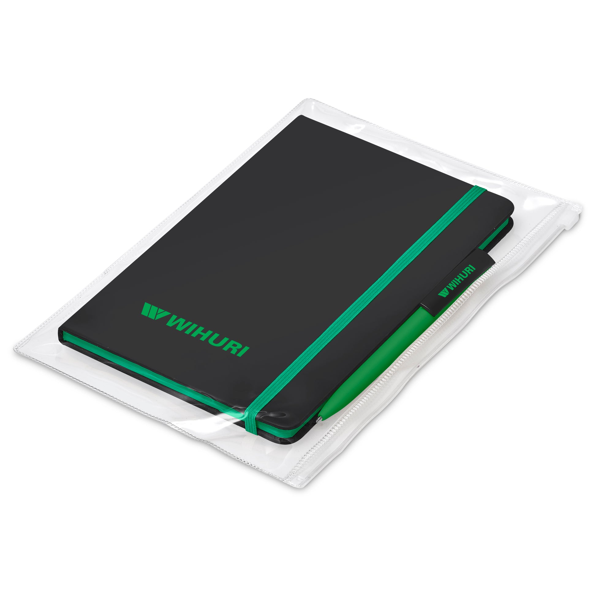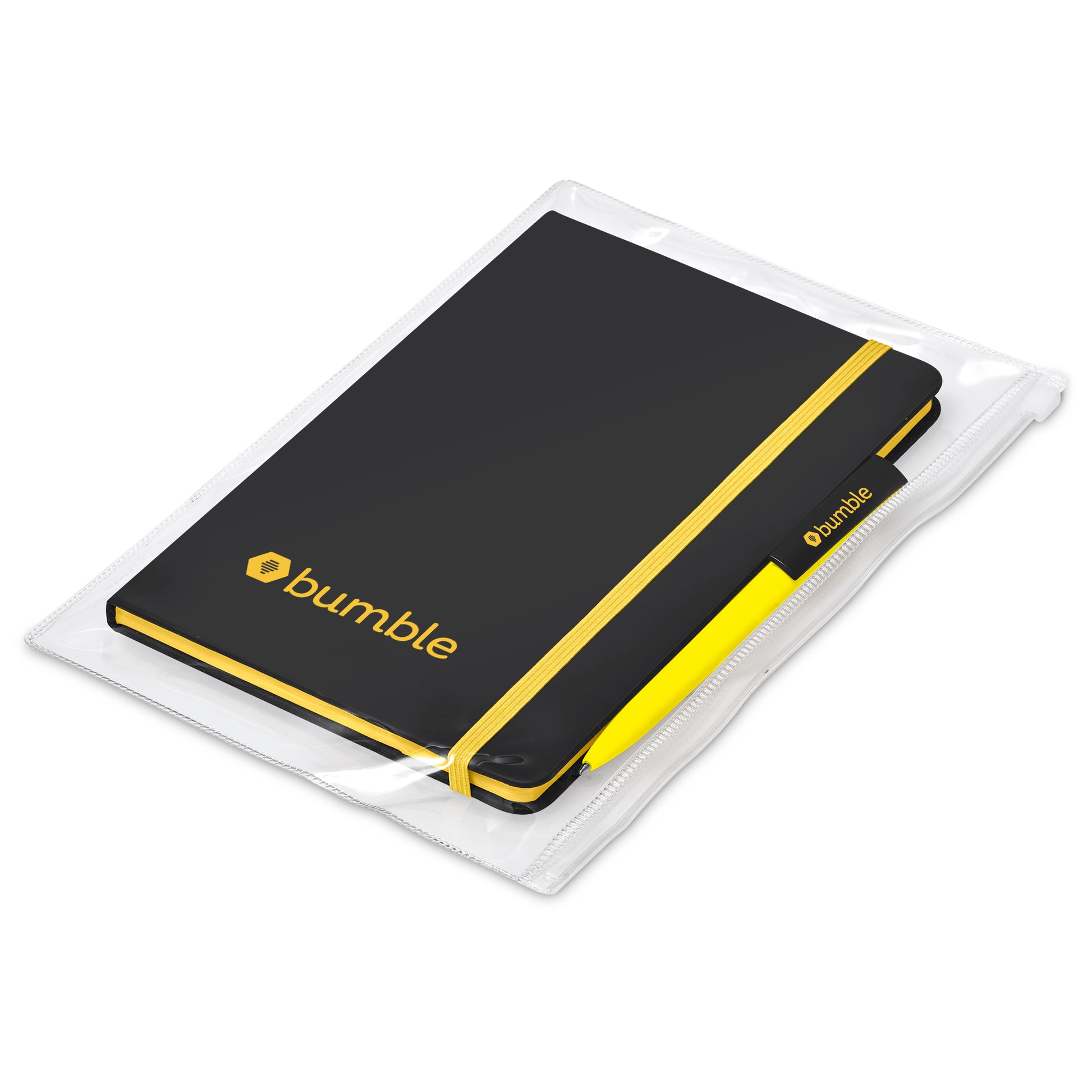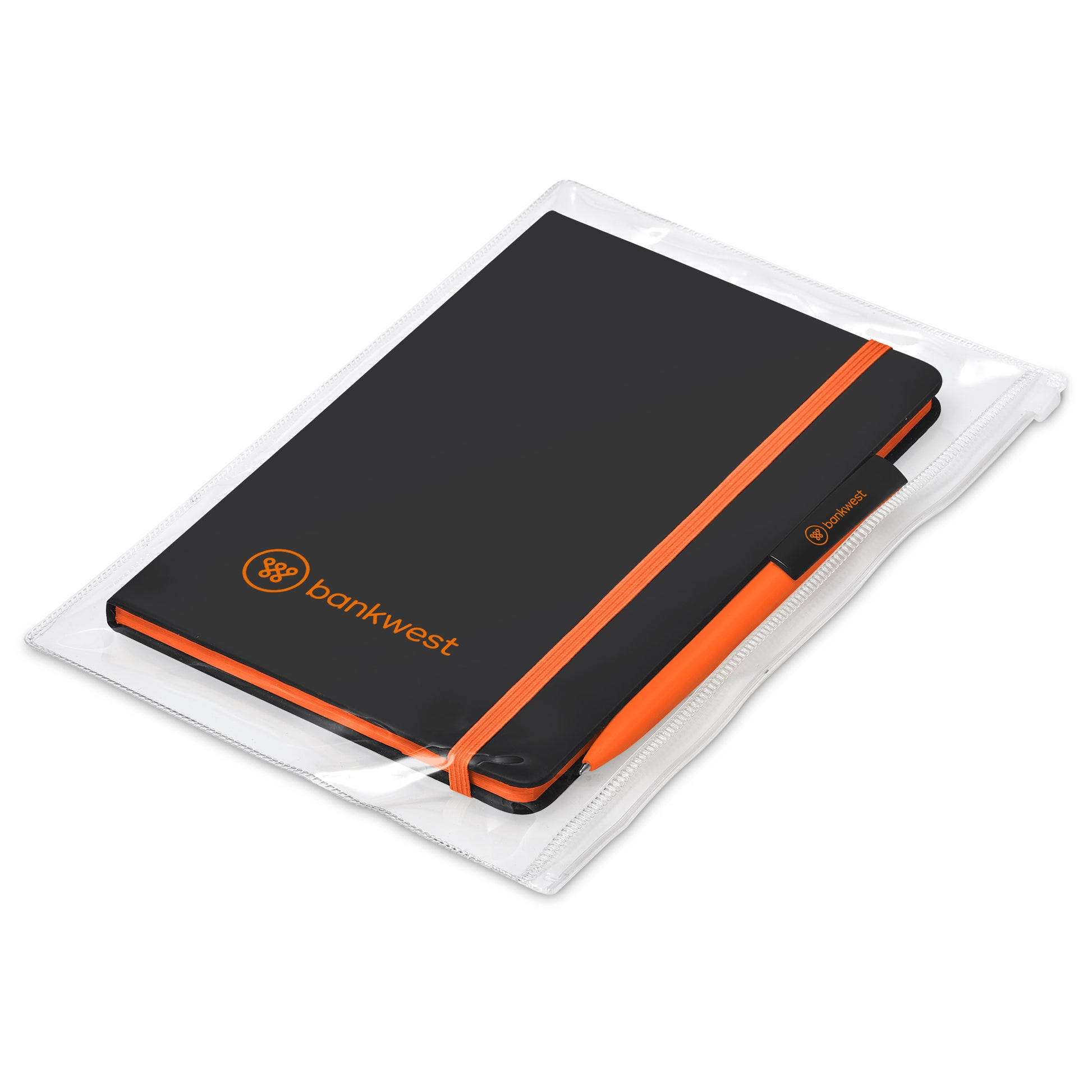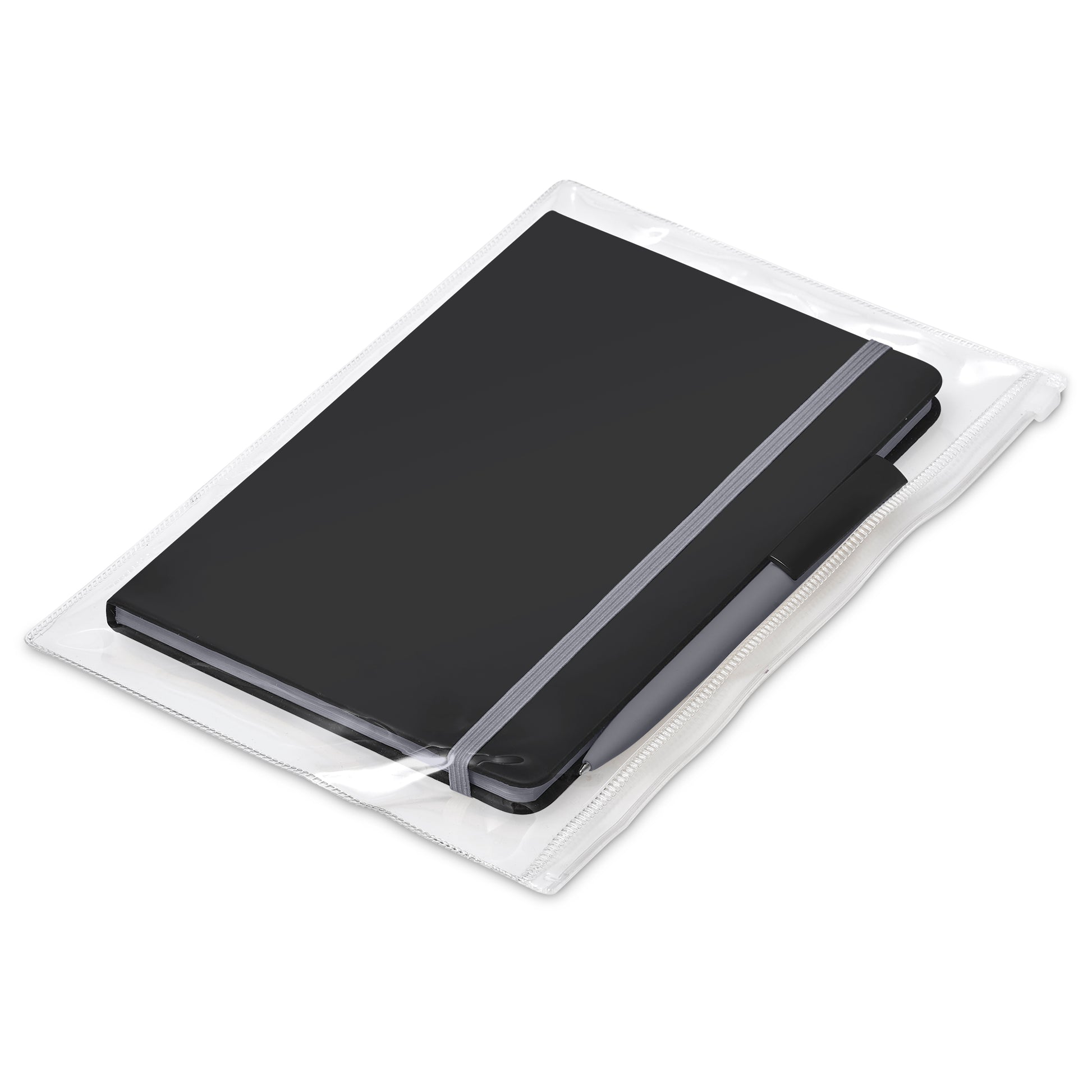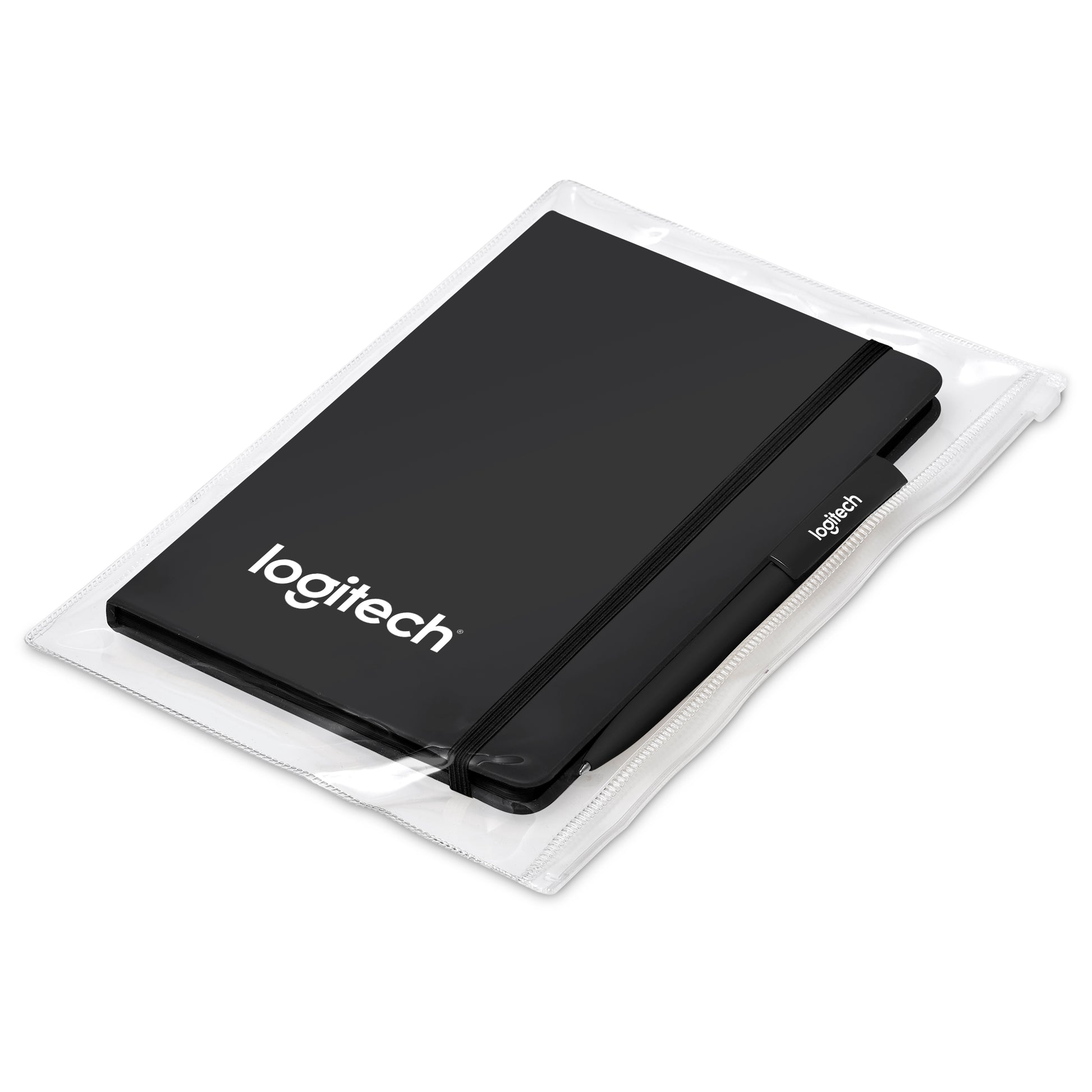 The matching matte textures of this notebook and pen, combined with the colour accents, make them perfect partners. The pouch is made from good quality PVC, and has a ziplock closure. It’s tactile and durable, and can be reused for storing folded documents, cards, notes and other odds ‘n ends.